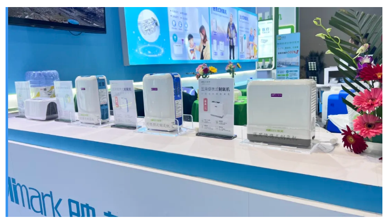 映美医疗在本次展会上展出多款产品,包括即将上市的5L台式医用分子筛制氧机、等效3L/5L/7L便携式制氧机,以及雾化器等呼吸医疗器械。
