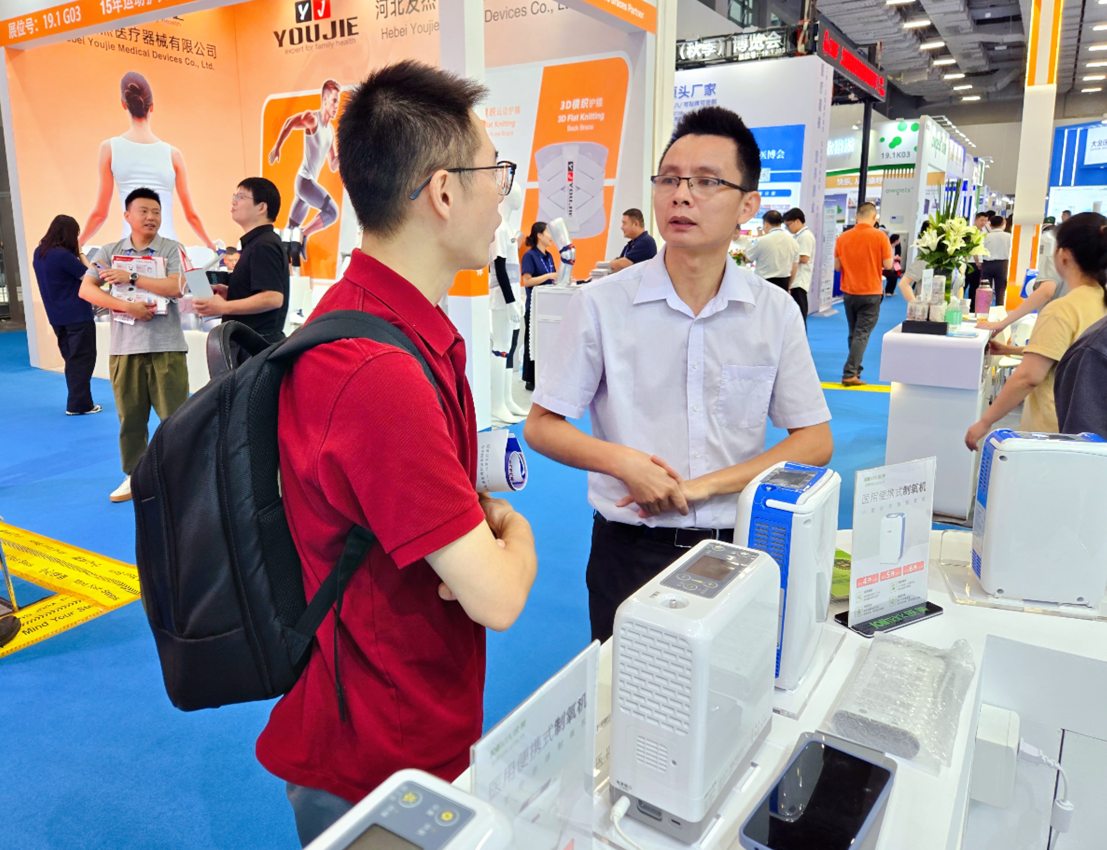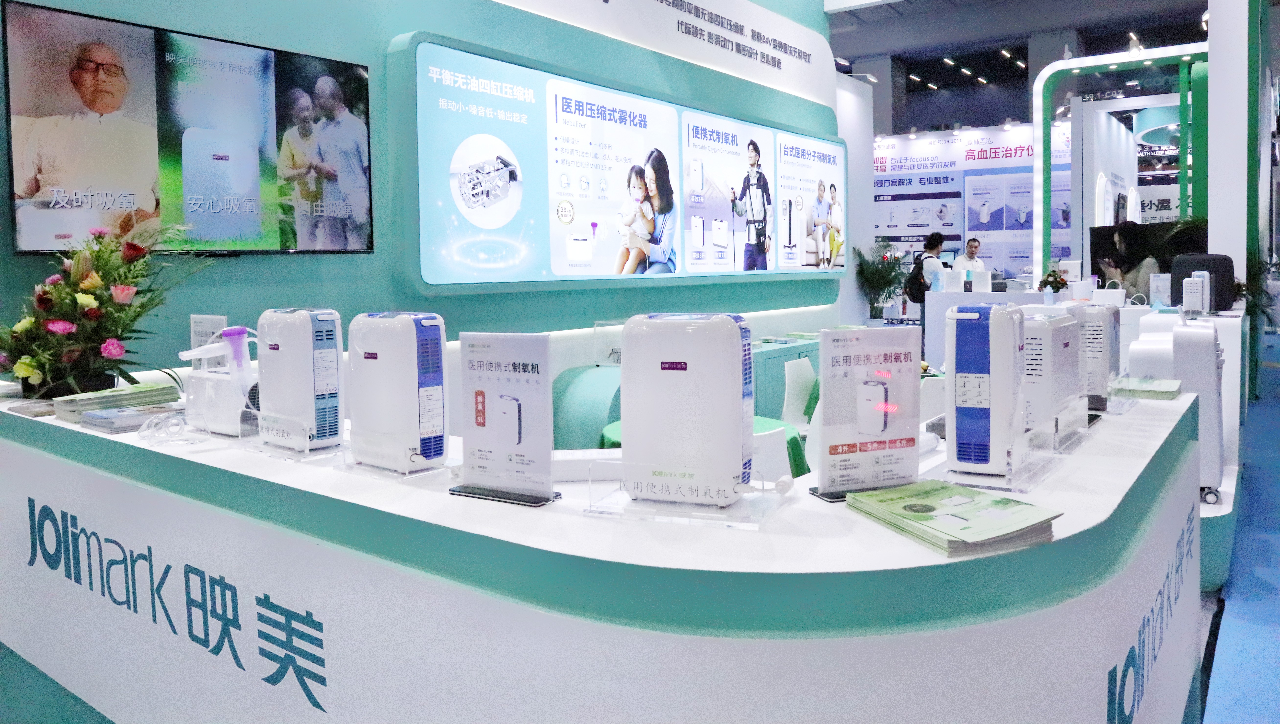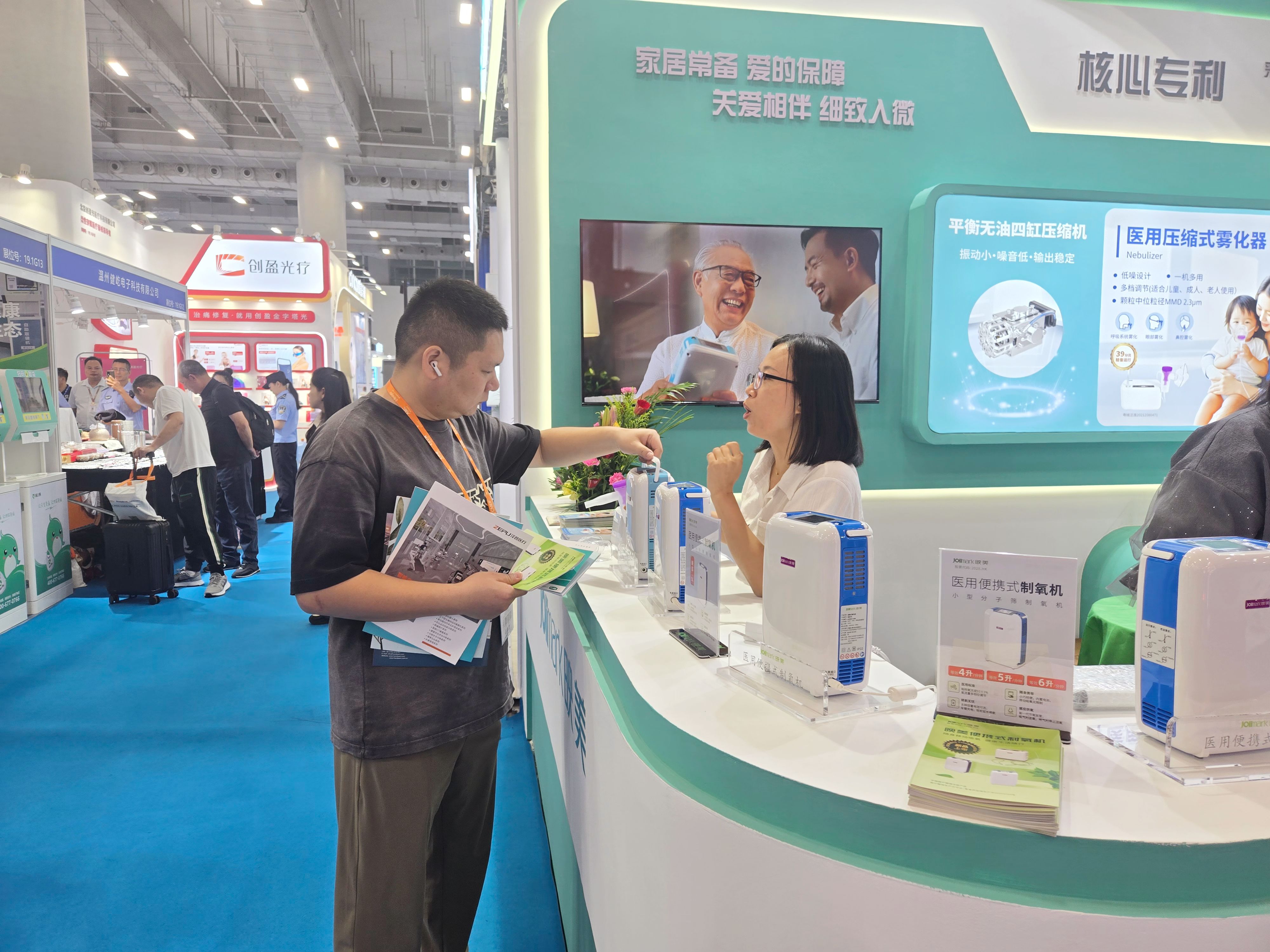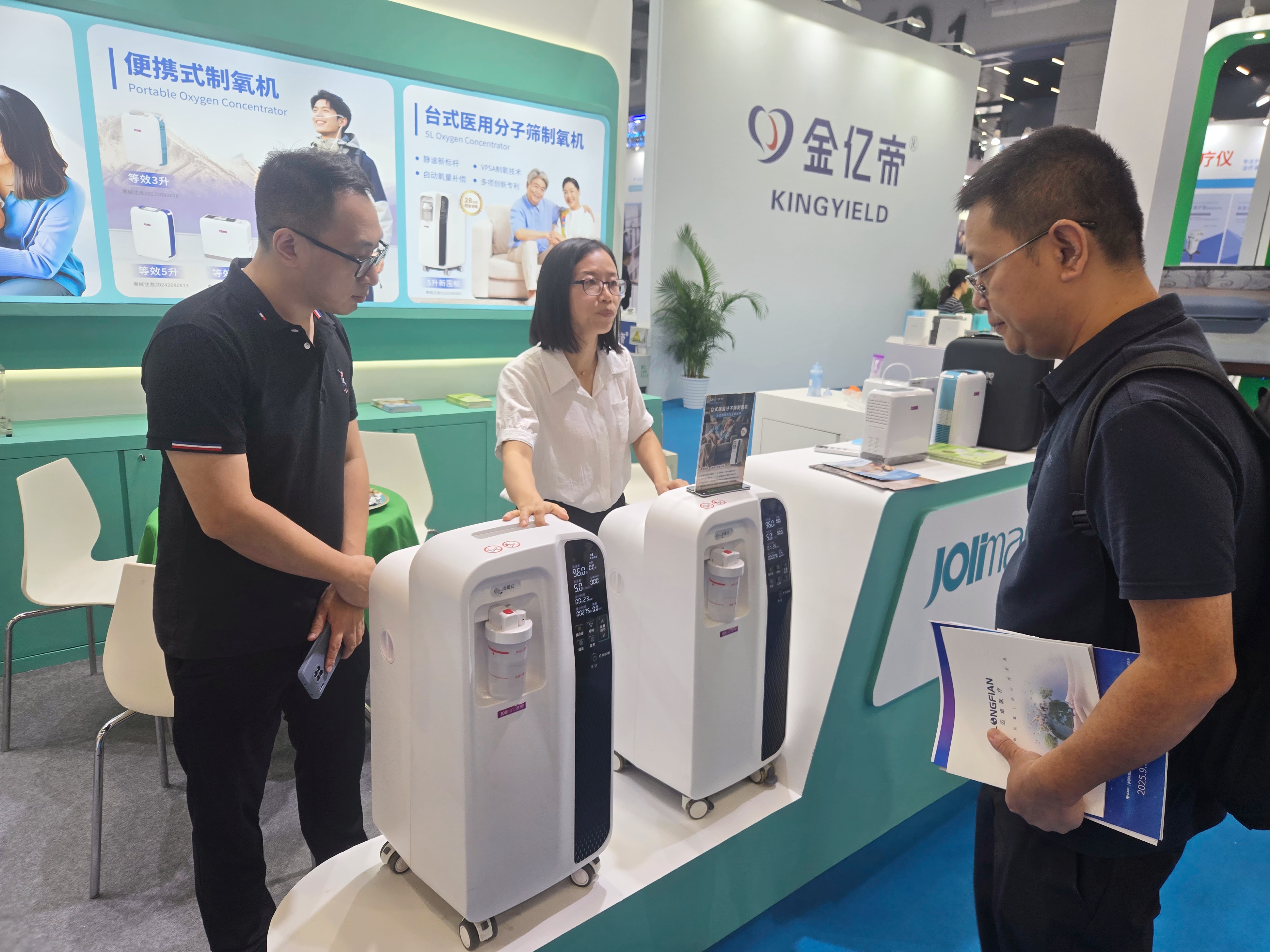 映美医疗在本届CMEF上双机齐发,推出7升台式医用分子筛制氧机与等效8升便携式制氧机,以差异化技术矩阵覆盖居家与户外全场景氧疗需求。